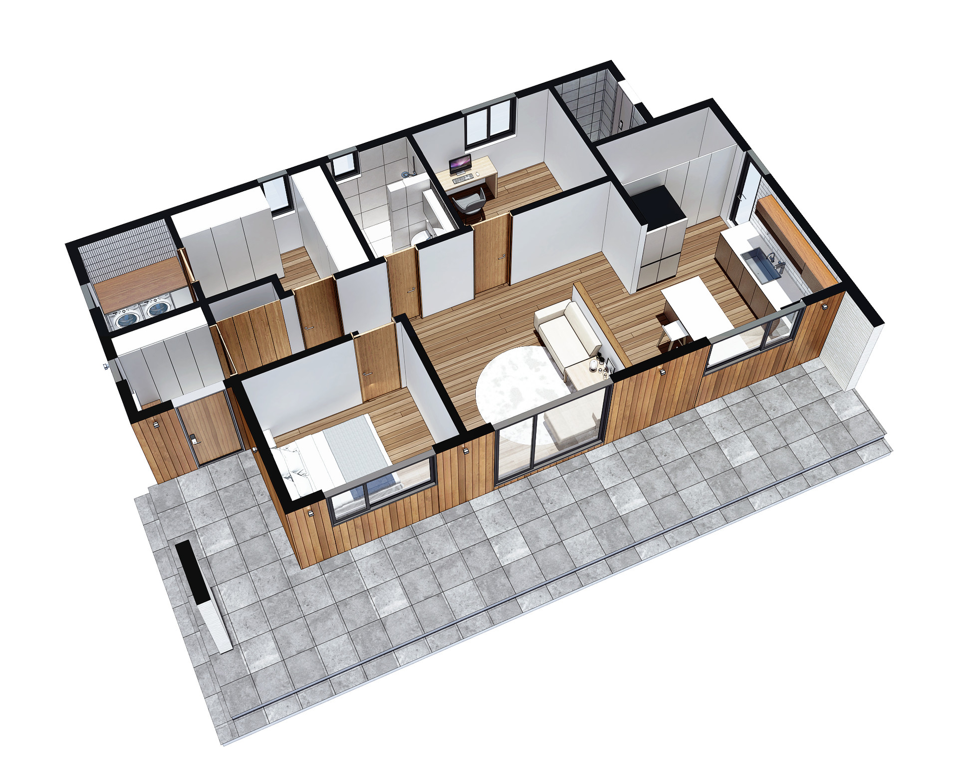 침실과 드레스룸, 세탁실이 효율적으로 배치되어 소형 평형에서도 여유를 느낄 수 있으며, 마당과 데크는 또 하나의 거실이 되어 사계절의 풍경을 집 안으로 끌어들입니다.