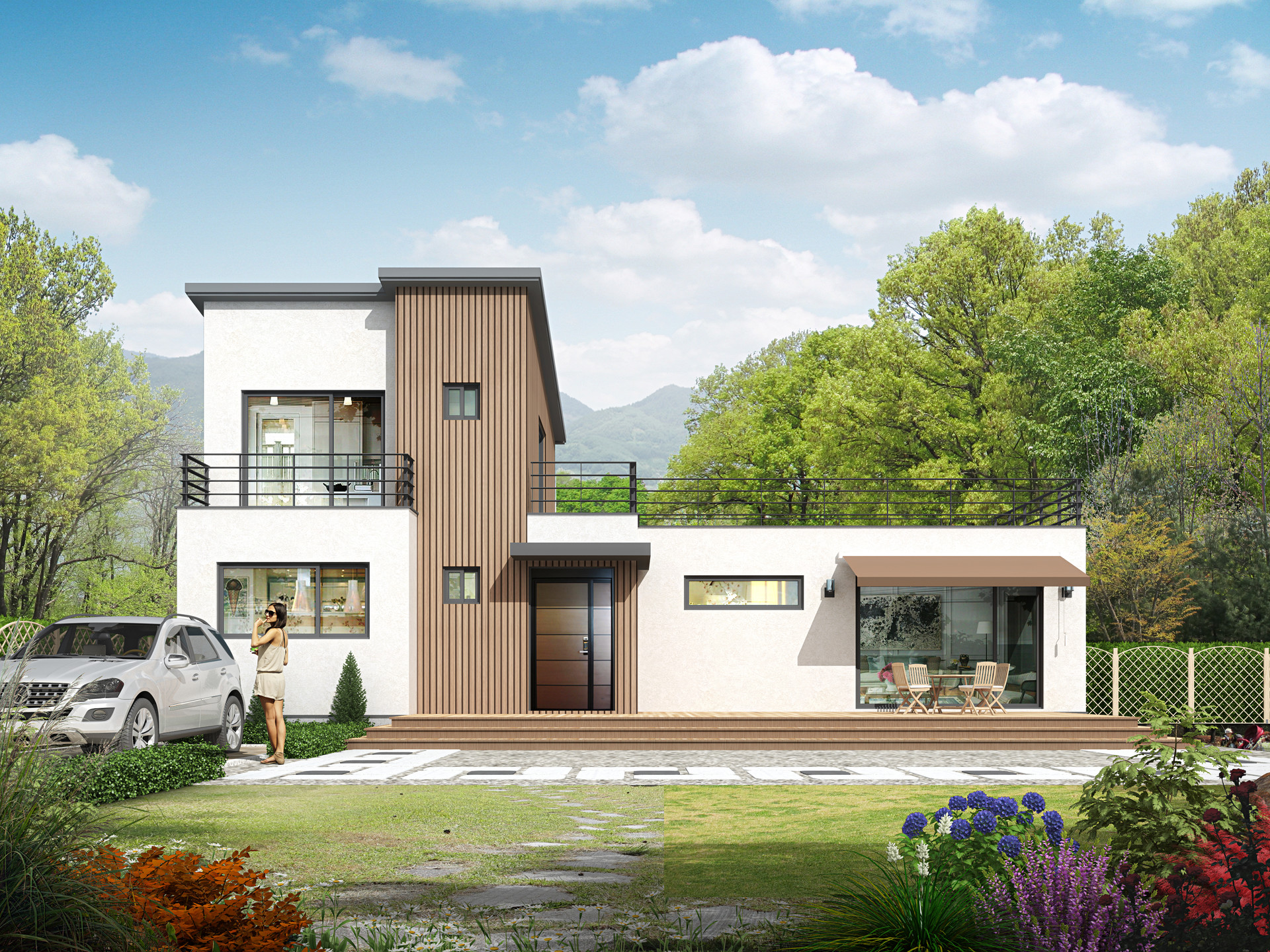 “세라믹사이딩과 루나우드가 어우러진 세련된 외관.”