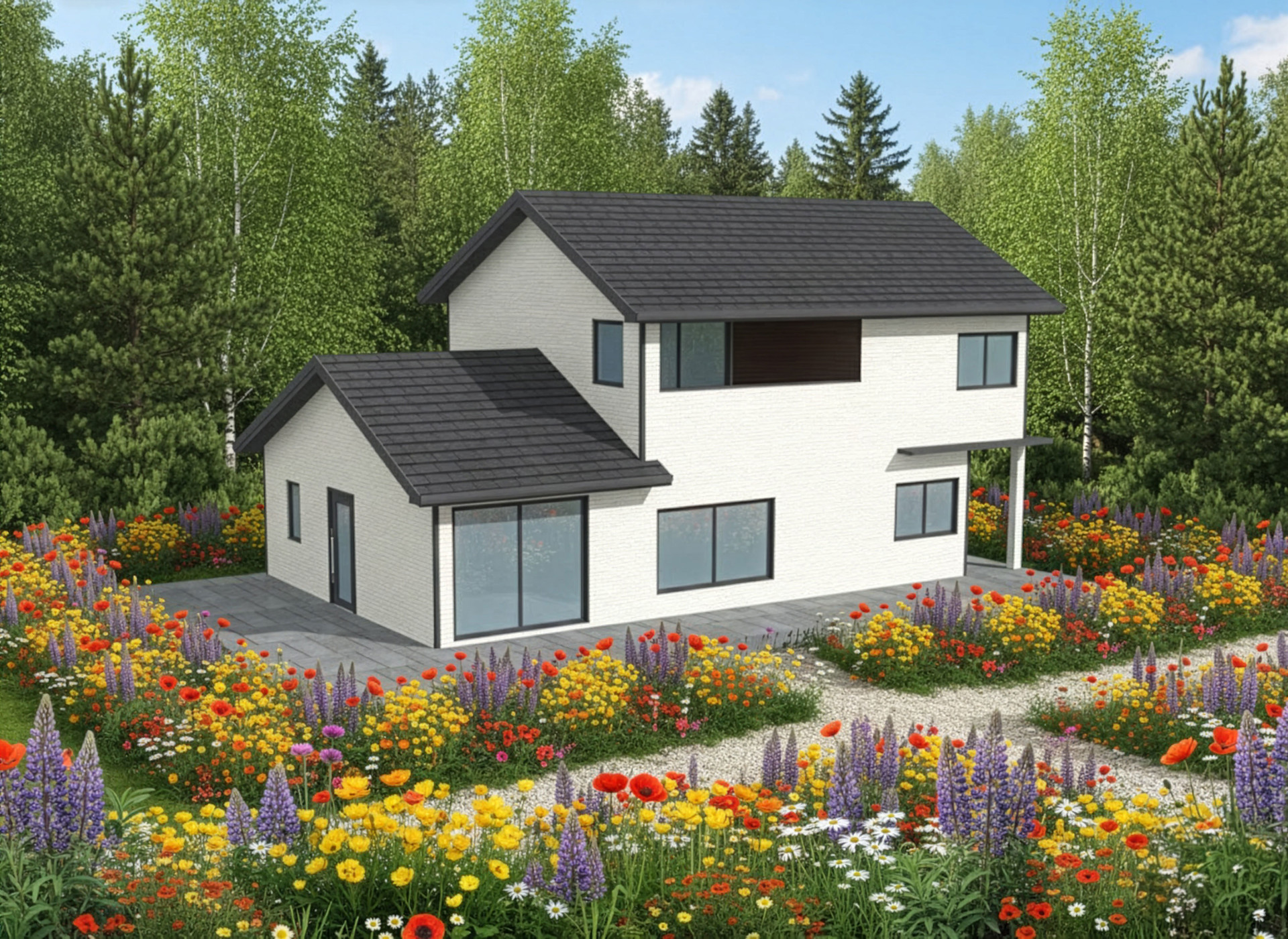 세라믹사이딩, 컬러베스트 지붕재, 루나우드, 독일식 3중창호, SANKYO, 아메리칸 스탠다드, 실크벽지, 히노끼루버, 강마루