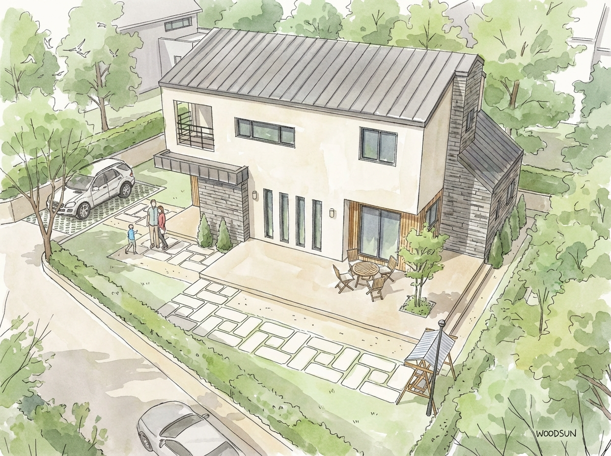 심플한 외관과 세련된 자재가 어우러진 모던 하우스.