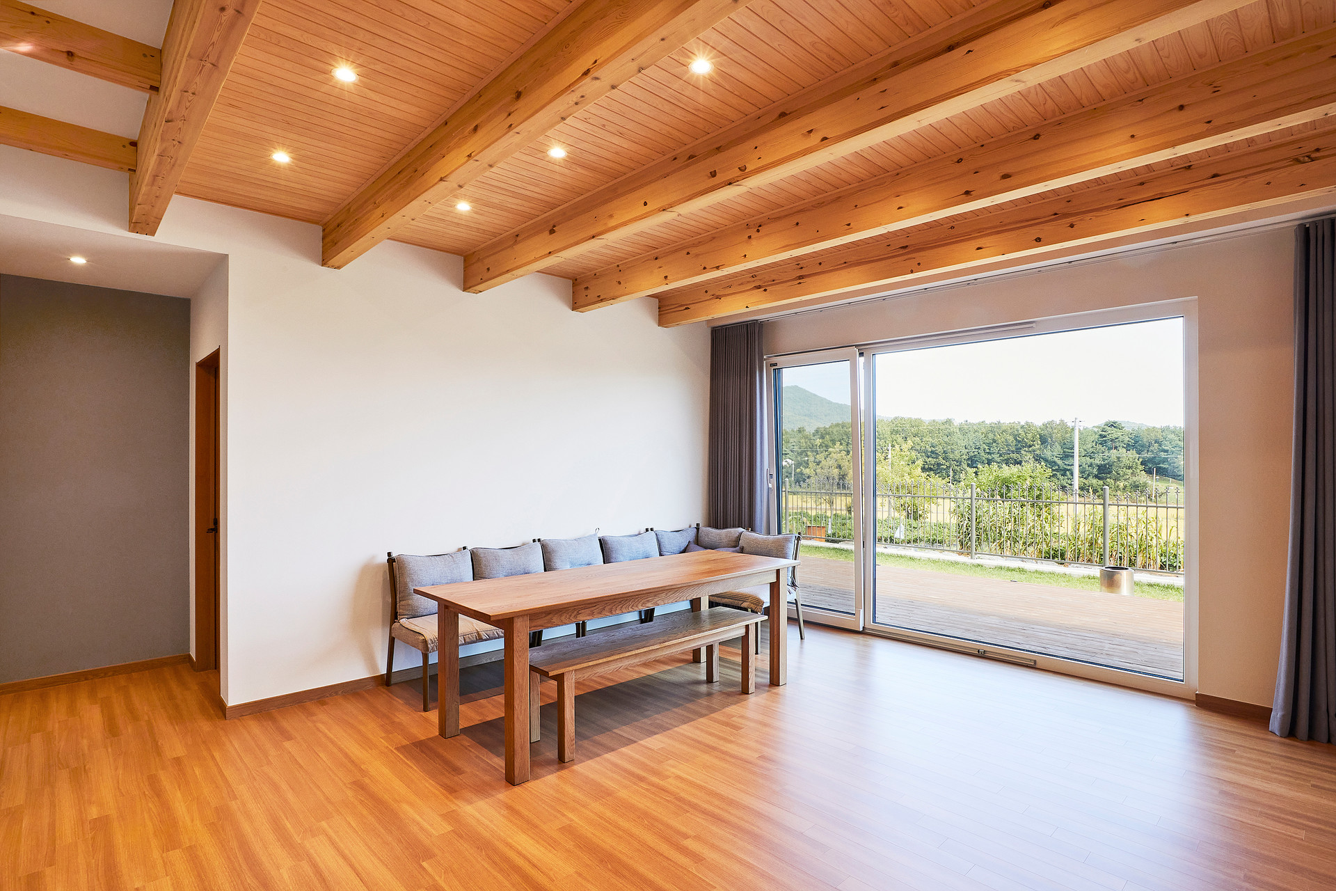 그리고 넓은 데크는 또 하나의 거실이 되어, 계절이 바뀔 때마다 풍경이 달라지는 즐거움을 선물합니다. 봄에는 연두빛이 가까이 오고, 여름에는 초록이 짙어지며, 가을에는 바람의 결이 보이고, 겨울에는 고요함이 더 깊어집니다.