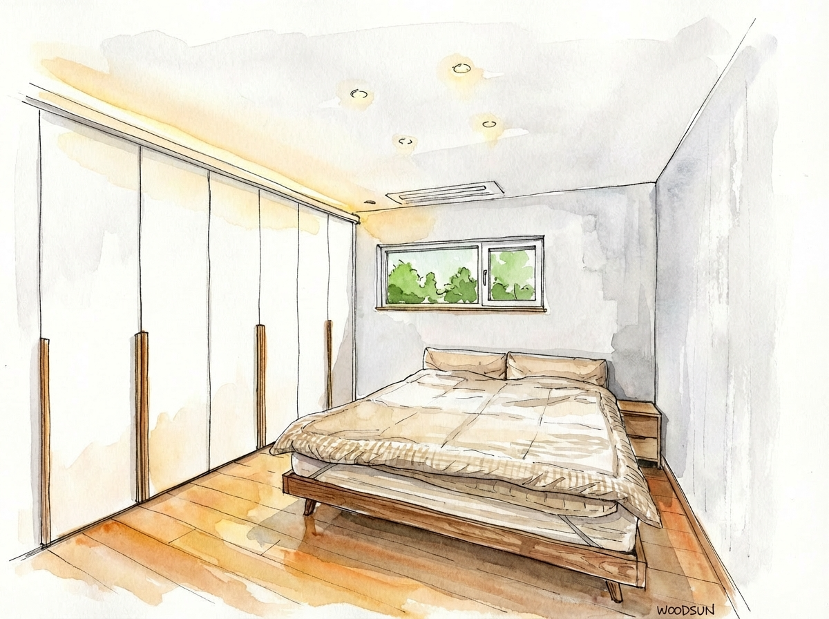 실내에 들어서면 분위기는 더 포근해집니다. 히노끼 루버, 강마루, 실크벽지 마감이 어우러져 나무의 온기가 은은하게 퍼지고, 공간 전체가 편안한 결로 이어집니다. 차분한 마감이 주는 안정감 덕분에, 꾸미지 않아도 집이 스스로 ‘쉼’의 역할을 해주는 듯했습니다.