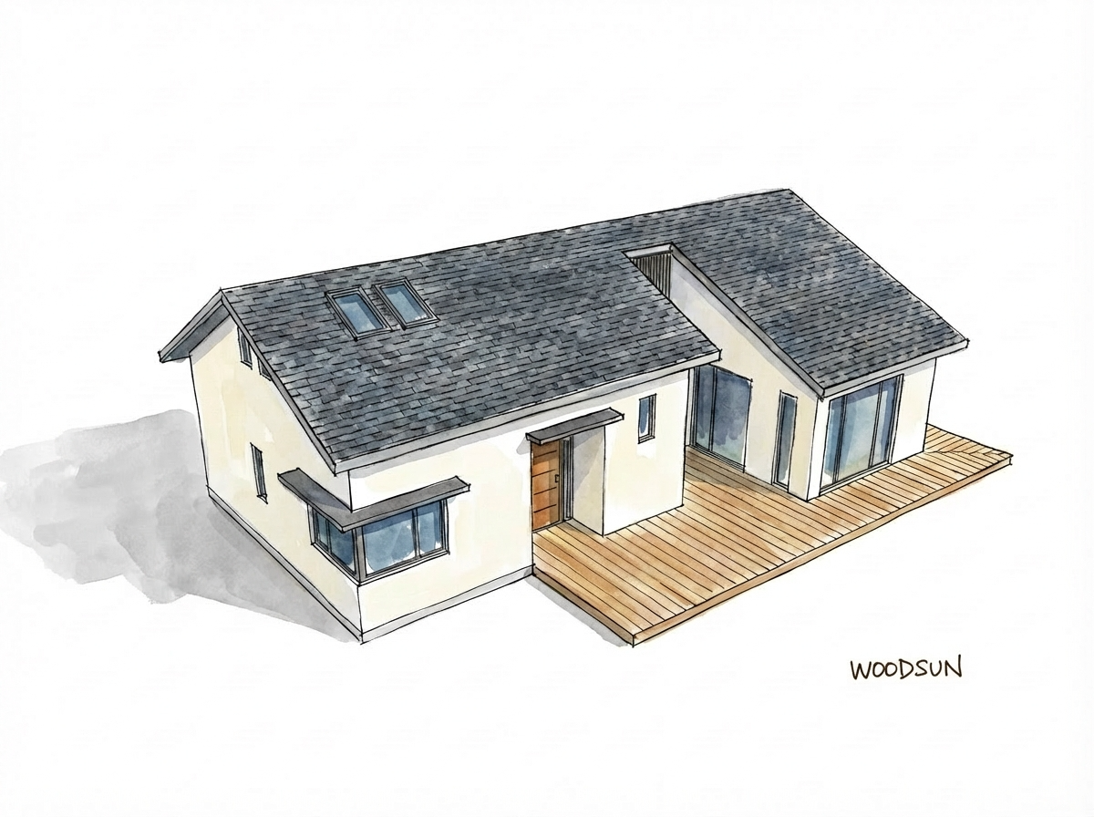 집의 첫인상은 단정하면서도 편안합니다. 세라믹사이딩과 컬러베스트 지붕재가 만들어내는 자연스러운 질감 덕분에 주변 풍경과 무리 없이 어우러지고, 과하게 튀지 않으면서도 오래도록 질리지 않는 분위기가 남습니다.