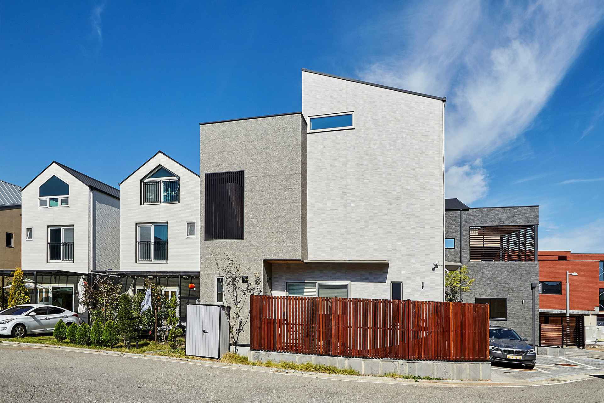 외관은 직선과 절제된 비율을 바탕으로 단정하게 정리해, 처음 마주했을 때부터 깔끔한 인상과 건축적인 완성도를 느낄 수 있도록 계획하였고, 마감은 세라믹사이딩, 리얼징크, 갈바륨 지붕재 등을 적용해 현대적인 감각과 견고함을 함께 담아, 시간이 지나도 질리지 않는 분위기를 지향했습니다.